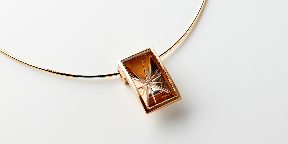 To emphasize the unique shape of these precious stones, they are mounted in a distinctive pyramidal setting. The pyramid is pointing inwards towards the body of the wearer, making a connection and creating a unique flow of energy between the piece and the person wearing it.